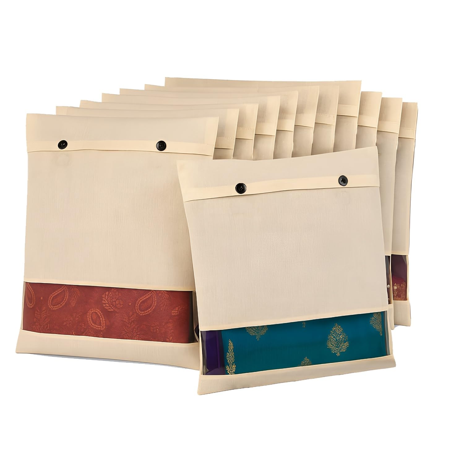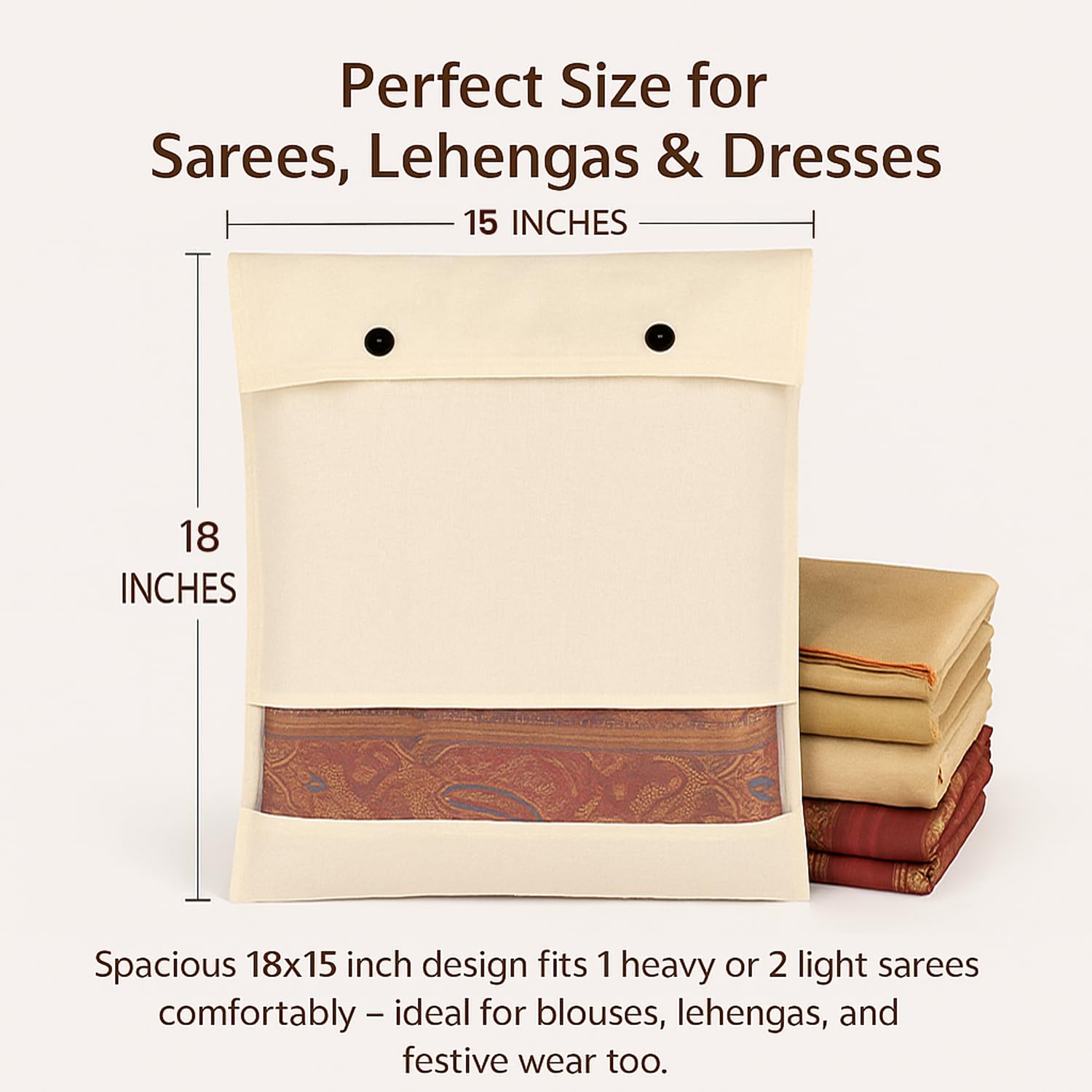 Cotton Saree Cover for Storage | Saree Bags (18×15 Inch) with Button Closure & Transparent Mesh Window | 100% Washable Fabric Clothes Organizer for Storage | Wardrobe Organiser