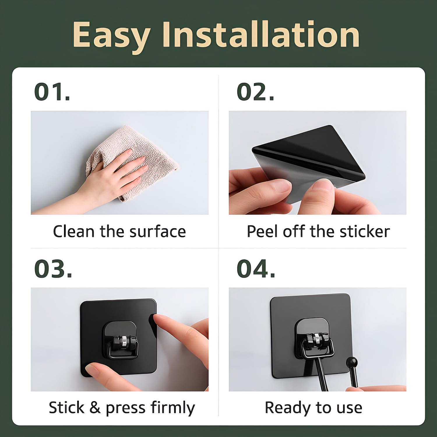 - Waterproof, Rustproof and Long Lasting – Built to withstand steam, moisture and daily use. These waterproof hooks and rustproof wall stick hooks stay firmly in place in bathrooms, kitchens and laundry areas.