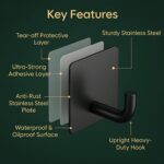 Self Adhesive Hooks for Wall Heavy Items – Metal Wall Hooks for Hanging Clothes, Towels & Keys – Waterproof No Drill Sticky Wall Hanger Hook for Bathroom & Kitchen (J Hook-Black)