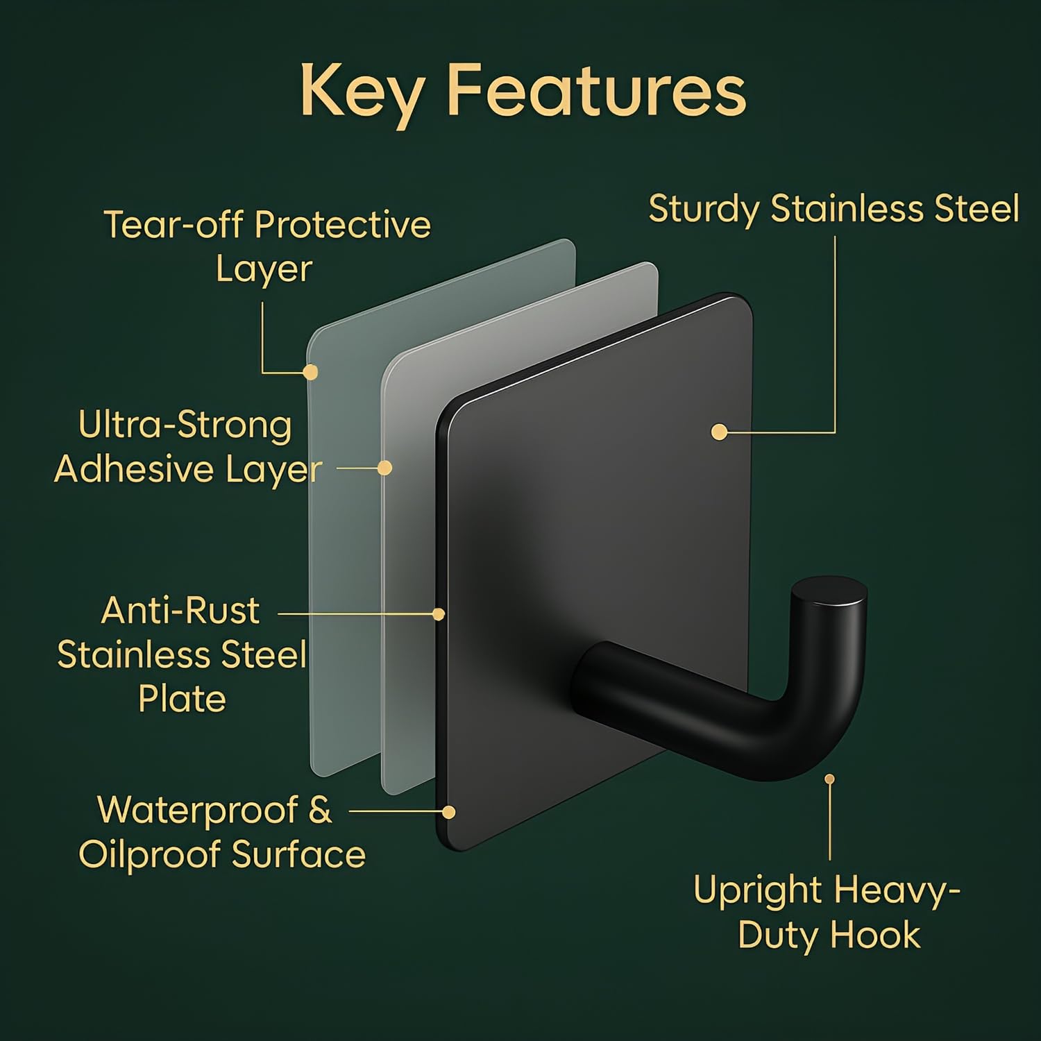 - Heavy Duty Metal Hooks for Wall Hanging: Premium stainless steel metal wall hooks designed for heavy items; strong adhesive hooks for wall, bathroom, kitchen, tiles, and wardrobe. Works as coat hook, towel hook, clothes hook, key hook, bag hook, utensil hook, loofah holder, and multipurpose wall hanger.